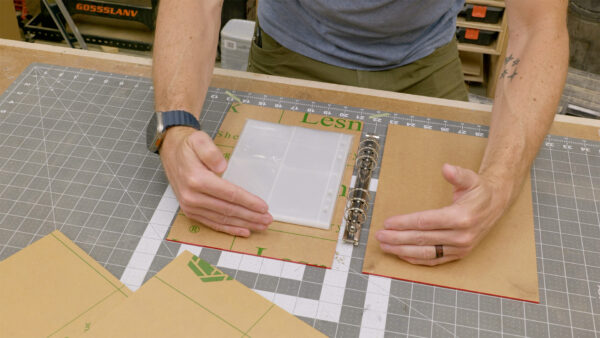 Once the hinges showed up, I could finally start sizing up the covers and spine. I cut everything on my table saw using a blade made specifically for plastics. A regular blade will get through it, but the plastics blade has 80 teeth and actually melts through the material cleanly instead of chipping out. It still throws a lot of fine particles around, so it gets messy either way. After I had the two covers and the spine cut to size, I could start thinking about what to put on the outside of the book.