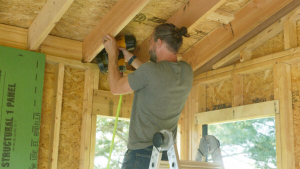 One commenter kindly pointed out that I forgot to put cripples underneath both sides of each window. If you don’t know what those are, they’re short vertical studs that help support the window sill. The fact that someone mentioned it in a nice, constructive way while I could still fix it made me really happy. I was able to go back and add them in, which I definitely wouldn’t have thought to do on my own. Another great comment was about how I sheathed the walls. When I built the front and back walls in four separate sections, I lined up the sheathing seams with the framing seams. A couple of people pointed out that if I had overlapped the sheathing over those seams, the whole wall would be more rigid. It makes total sense. Unfortunately it was too late to change it at that point, but the wall is plenty sturdy as it stands. I’ll definitely remember that trick for next time though.