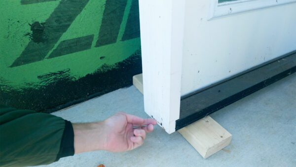 Then I ran into a bigger problem with the door frame. When I was getting ready to install the double doors, I realized I had made a pretty significant mistake—I framed the rough opening too high. The door frame didn’t fit right, and I had to come up with a solution fast. Luckily the fix turned out to be simpler than I thought. I cut a two by four to length and installed it along the top of the opening to bring the height down to where it needed to be. It wasn’t the way I planned to do it, but it worked perfectly and gave me a solid surface to attach the door frame to. Sometimes your mistakes end up being easier to fix than you think they’ll be, and this was definitely one of those times. The door frame fit correctly after that adjustment, and I was able to move forward with the installation.